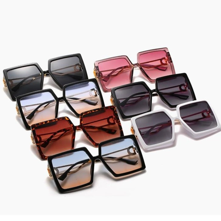Resin Frame UV400 Mirror Gradient Lens Square Sunglasses