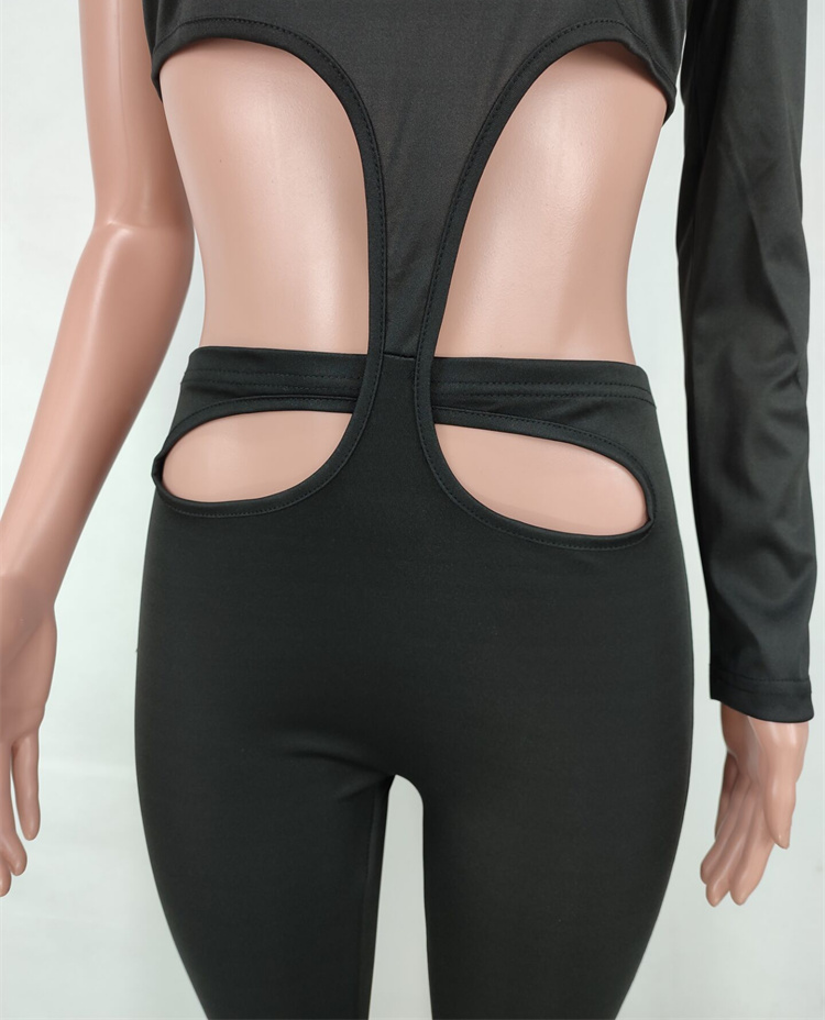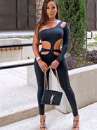 Luxury in simplicity, this black jumpsuit is a must-have for anyone. Crafted from soft, comfortable material, this one-sleeved design has a flattering silhouette. The modern cut and sleek design of this jumpsuit are perfect for any occasion.
