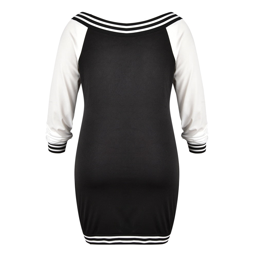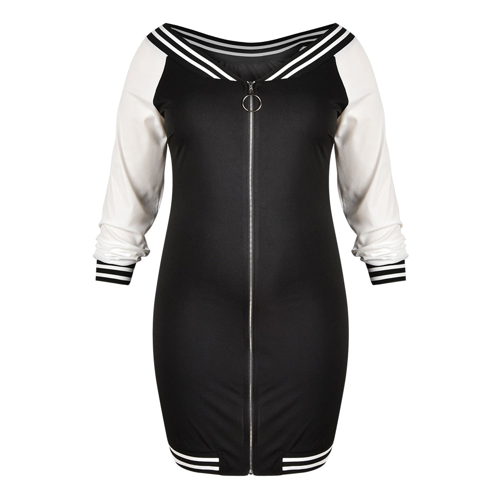 Casual V Zipper Long Sleeve Bodycon Women Plus Size Dress
