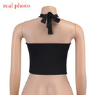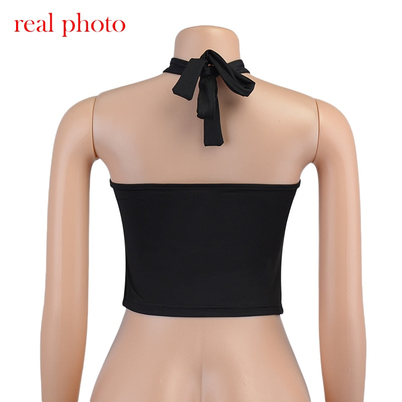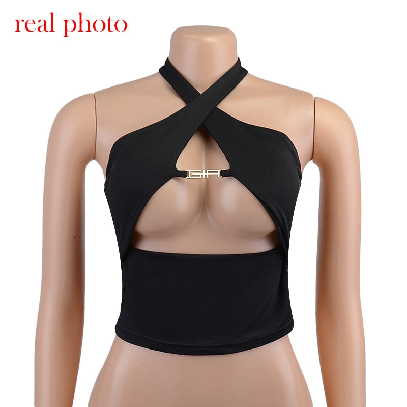 Hollow Out Halter Tank Top with Letter Metal Decoration