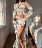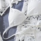 The Chained in Lace Lingerie Set in pristine white combines delicate lace with bold design, creating a striking contrast that commands attention. This daring set enhances your natural curves while offering an irresistible blend of elegance and edge, perfect for making a confident statement.
