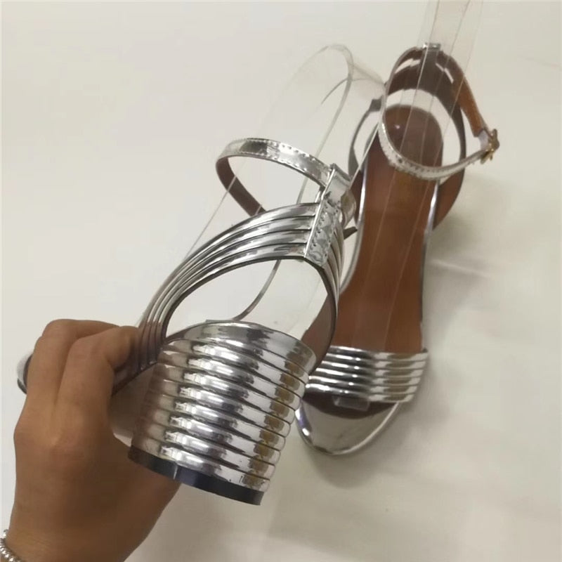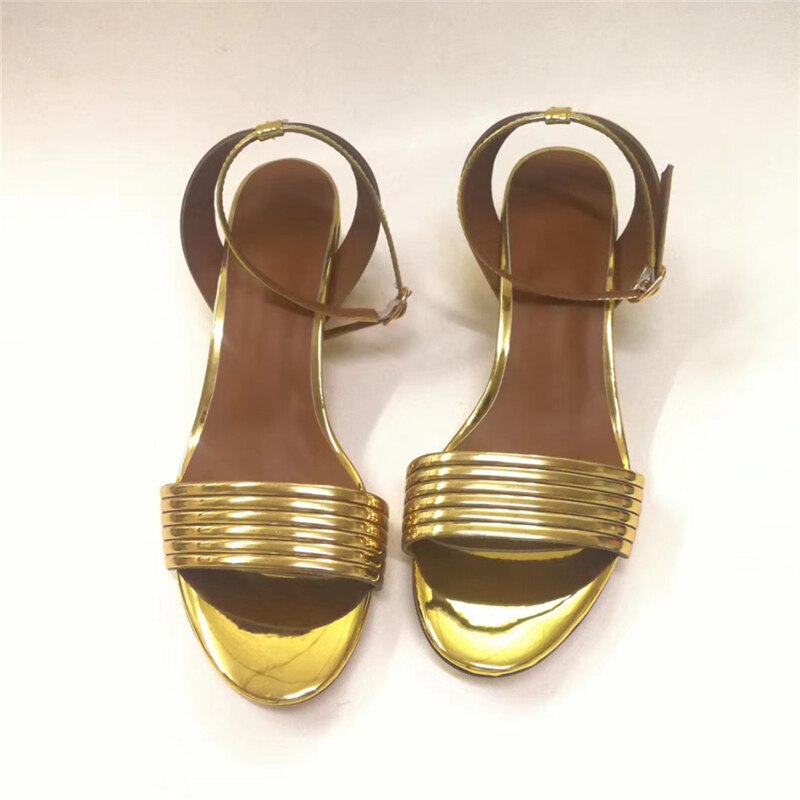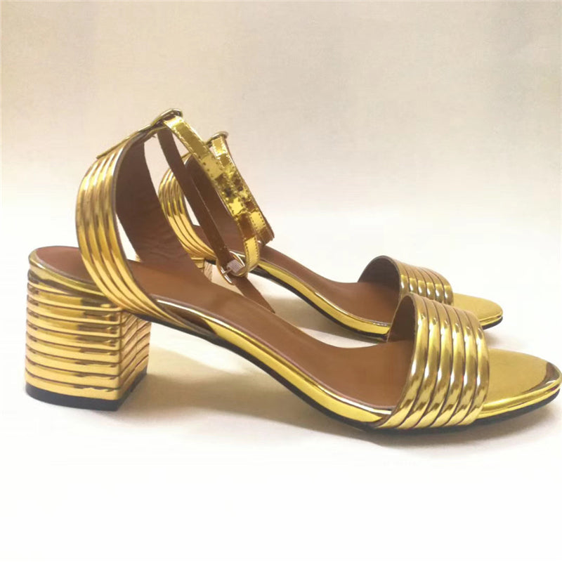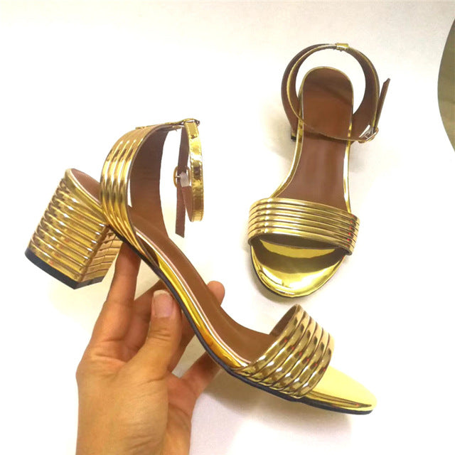 Patent Leather Solid Golden Square Heels Sandal