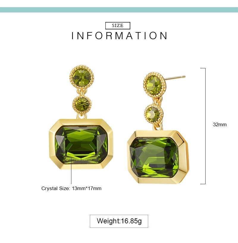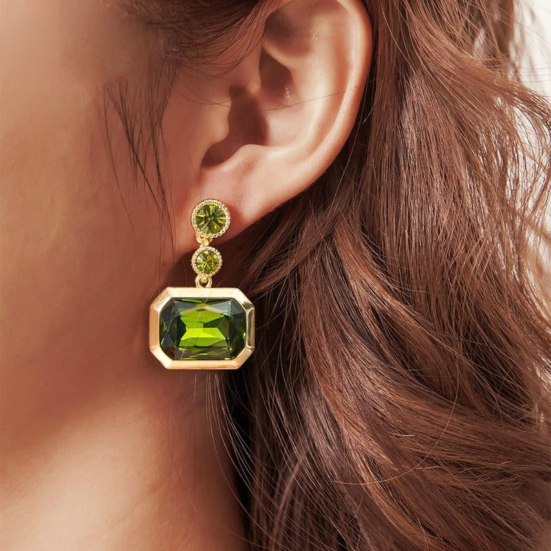 Copper Square Big Olive Green Crystal Woman Drop Earrings