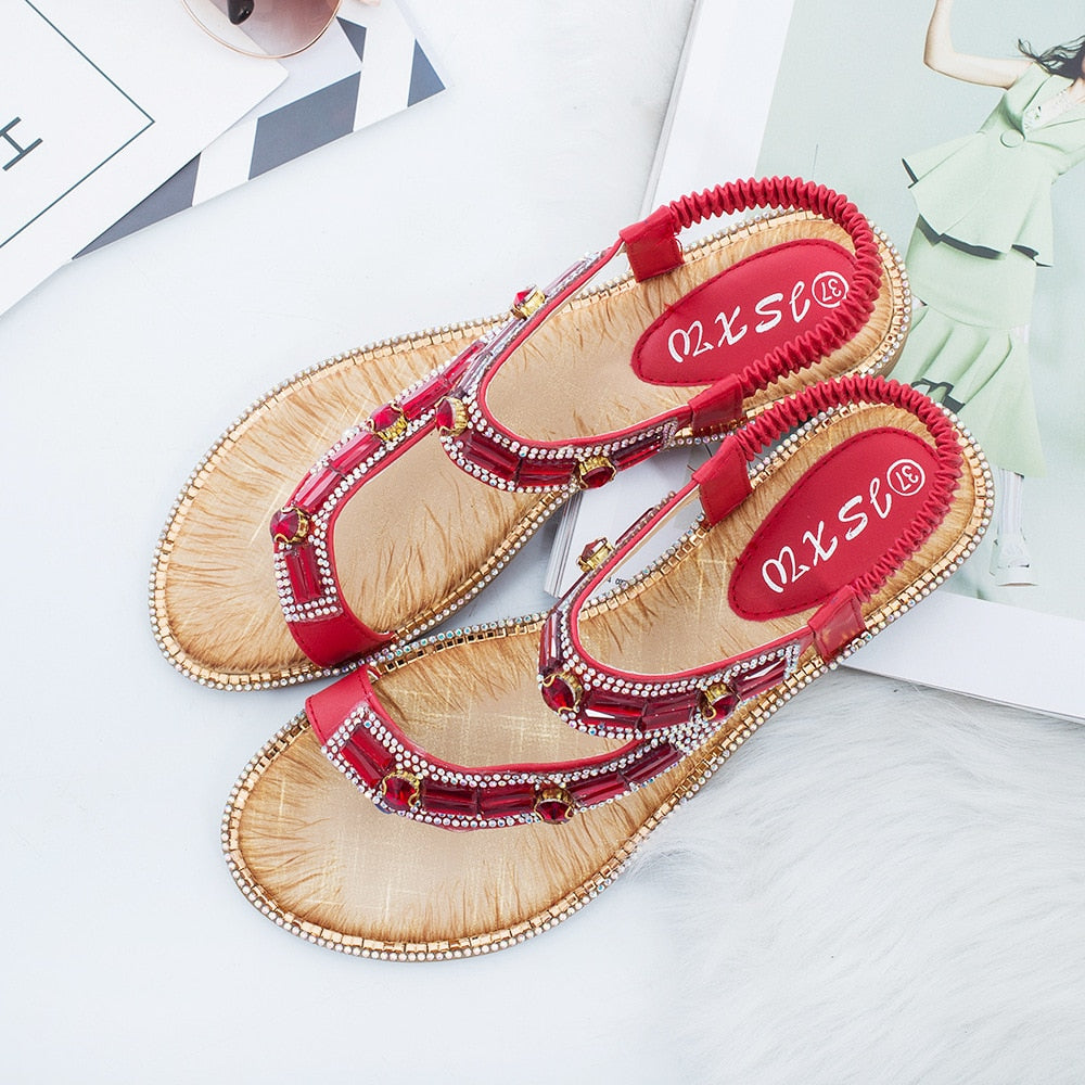 Cross Border Rhinestone T-Strap Flat Sandal