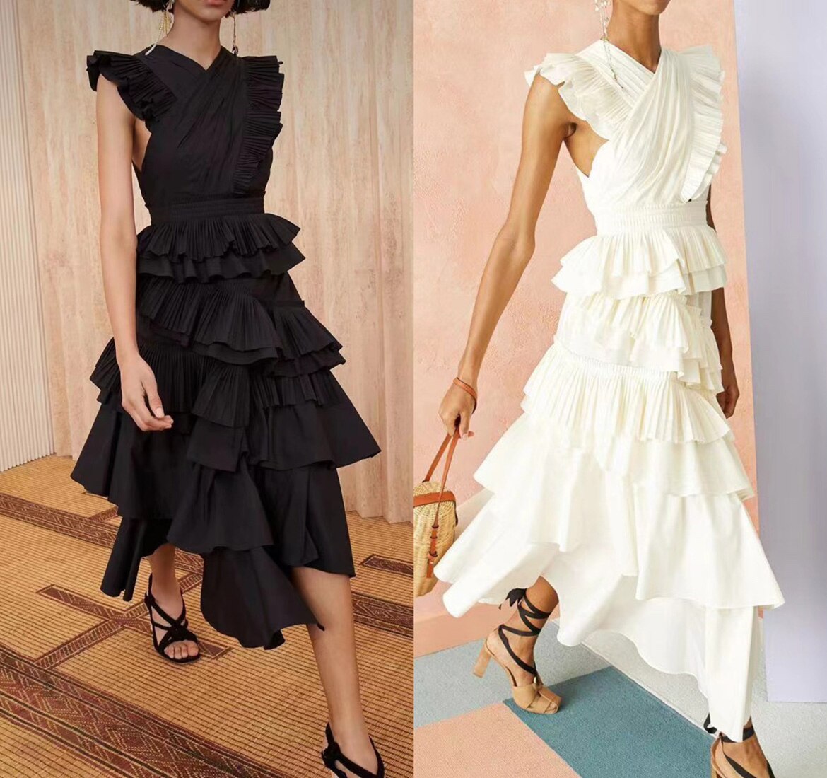 Looking your best is easy when you wear one of these flattering and feminine women's dresses. This modest yet stylish dress comes in a simple solid color that won't clash with your wardrobe items. This midi length is the perfect length for wearing with a pair of flats or heels. The delicate ruffle design is a unique and stylish choice that is sure to become a staple in any energetic wardrobe.
