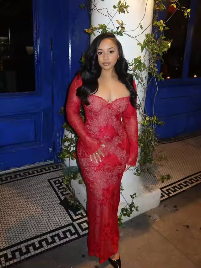 Dim Boutique Maxi Dress Unleash your boldest self in this striking maxi dress that commands attention. Crafted from luxurious lace and polyester blend, it delivers an intoxicating mix of delicate elegance and confident allure. The intricate lace detailing creates an irresistible visual drama while the polyester ensures a flattering, comfortable fit that moves with you. Perfect for those who refuse to blend in—wear it to turn heads and make unforgettable moments.