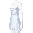 The spaghetti strap mini dress is a timeless classic. This particular style features a satin fabric that has a silky texture and solid color. The dress has a square neckline and thin spaghetti straps.