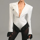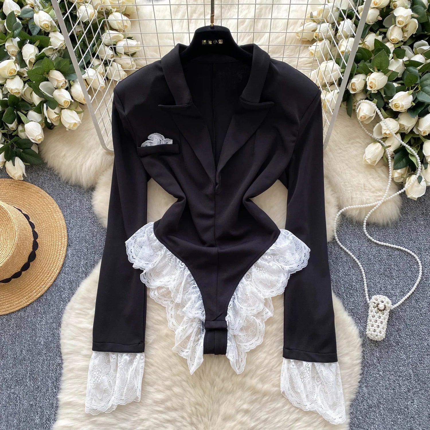 Upgrade your wardrobe with the luxurious Emotional Eclipse Bodysuit. Made from a slight stretch polyester material, this bodysuit offers a snug, flattering fit. The delicate lace decoration adds a touch of elegance, making this a versatile option for any occasion. Experience the ultimate blend of comfort and style with the Emotional Eclipse Bodysuit.