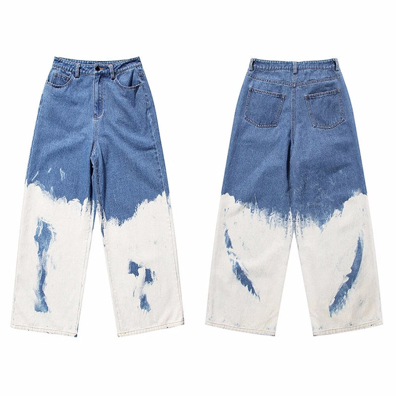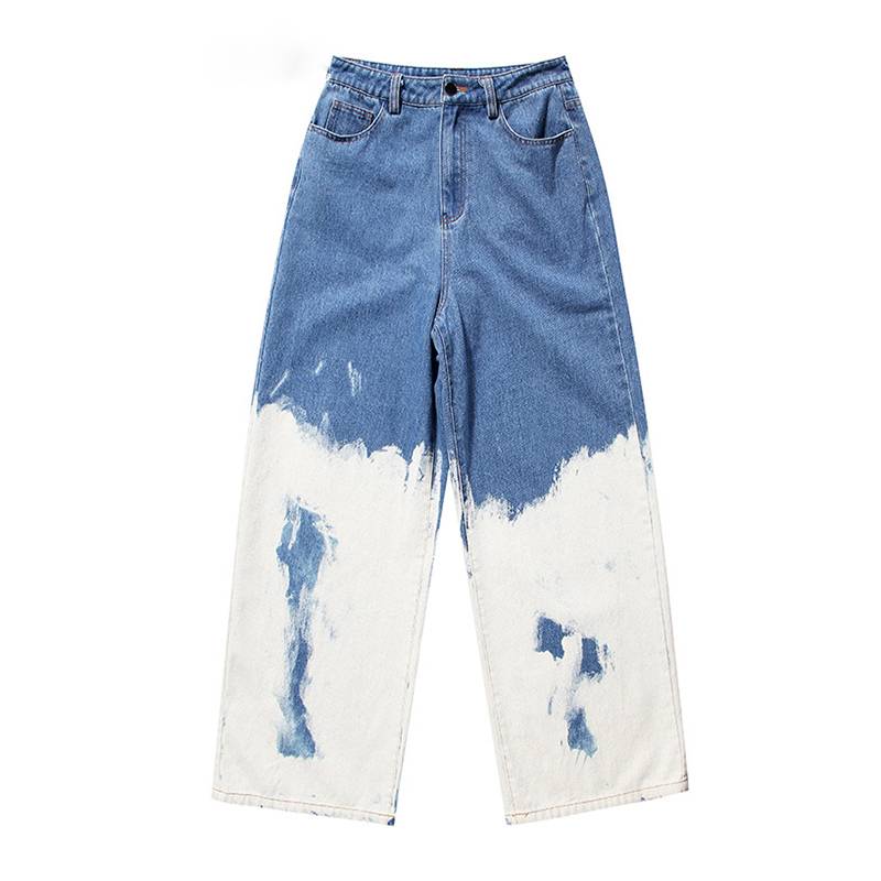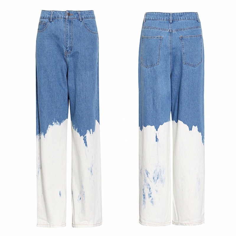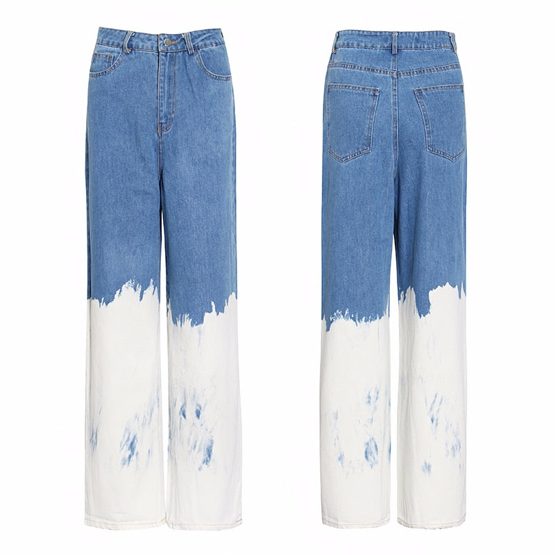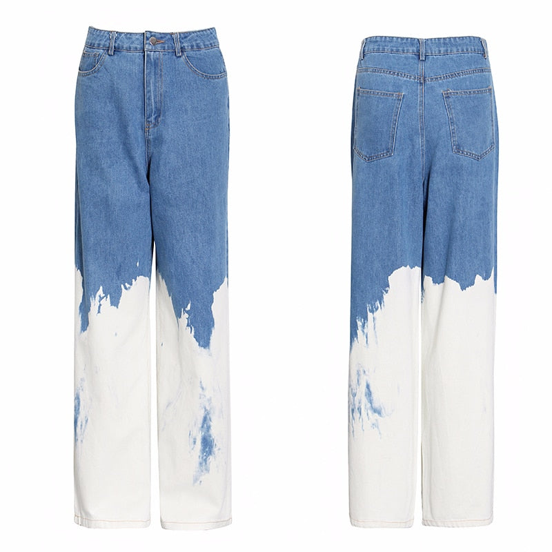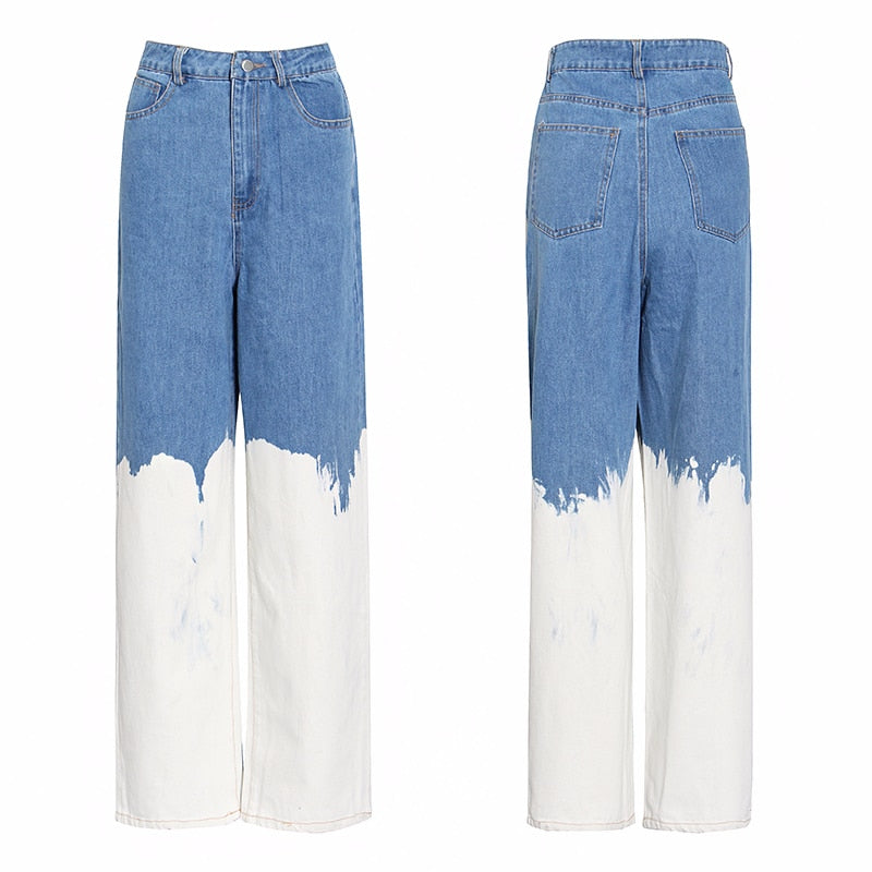 High-Waisted Loose Jeans with Button Fly Closure, Paint Decoration, and Cotton Polyester Material