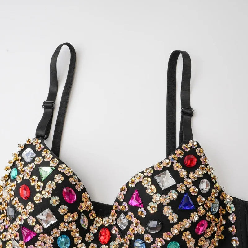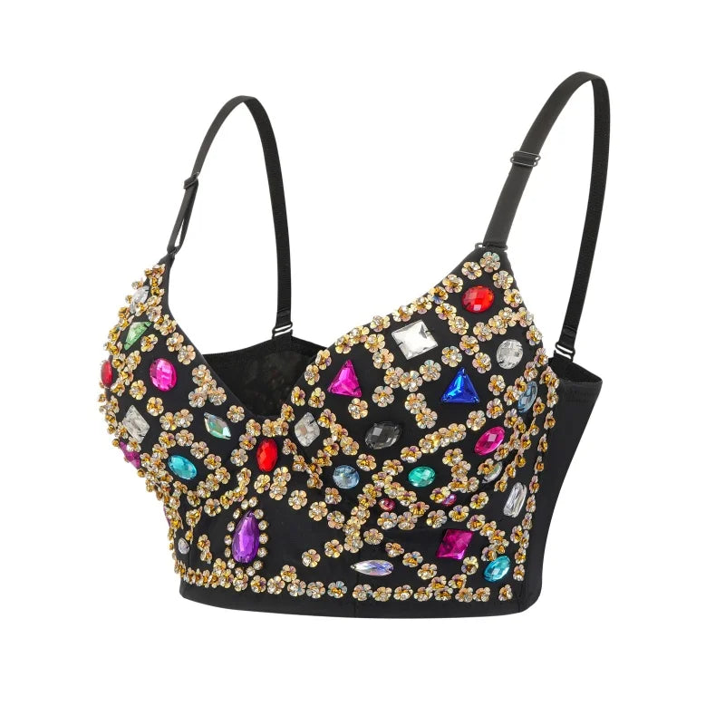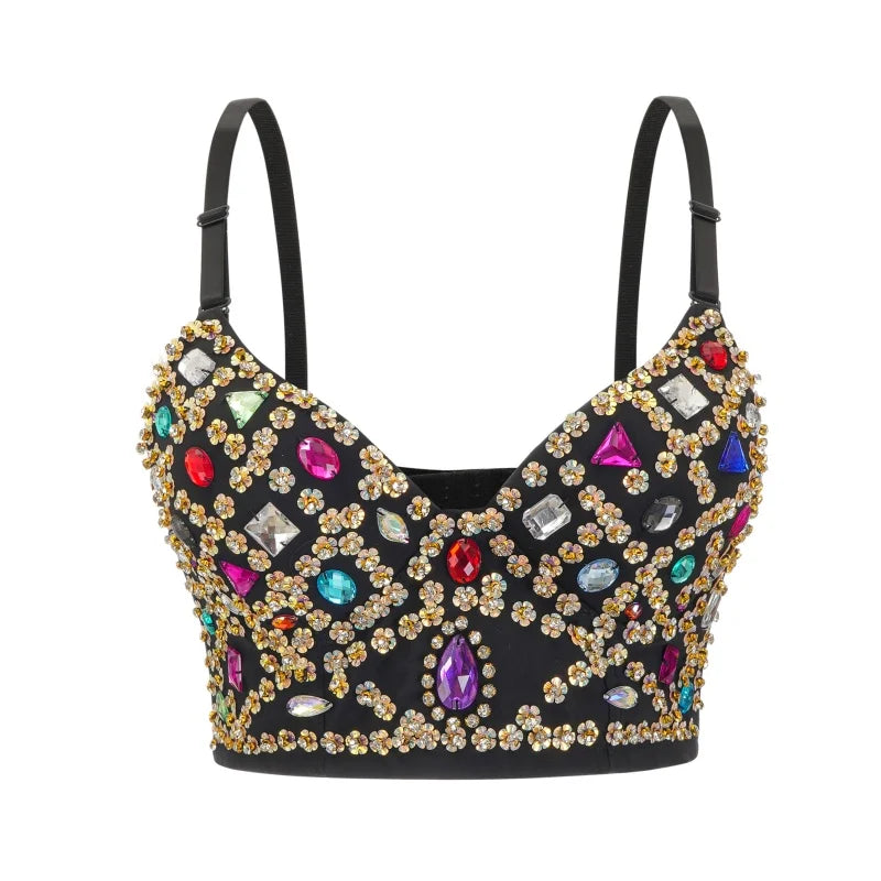 Step into the spotlight with the Feel It First Crop Top, featuring radiant rhinestones that command attention. This daring piece combines edgy style with sparkling glamour, perfect for making an unforgettable impression wherever you go.