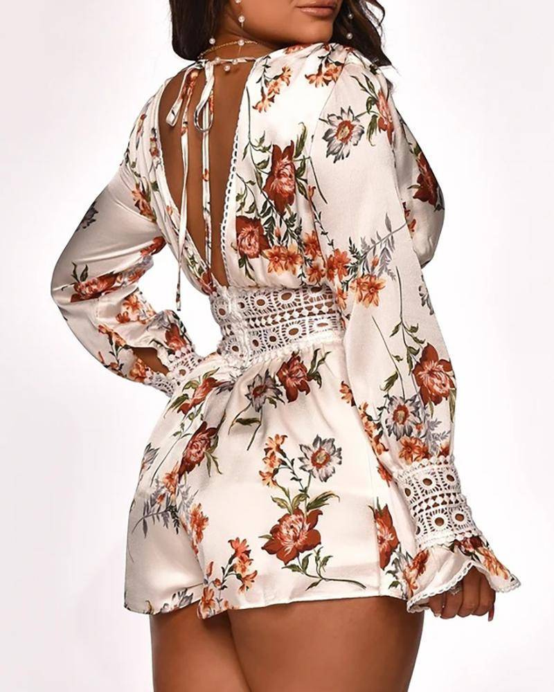 Floral Printed Long Sleeve Rompers with Hollow Out Decoration, Polyester Material, and Broadcloth Fabric Type