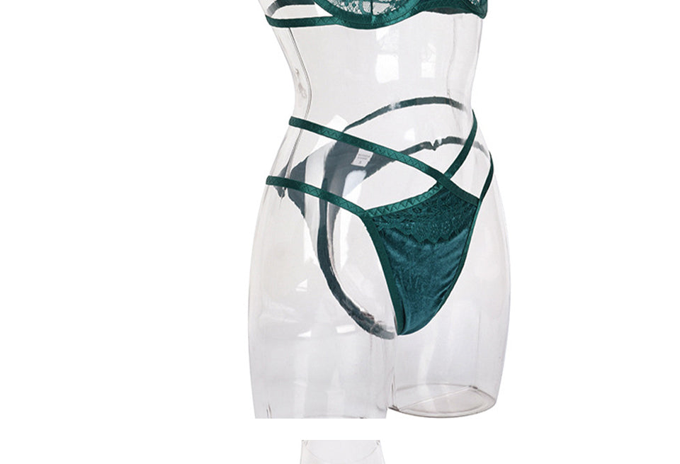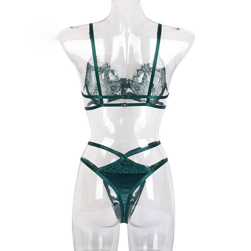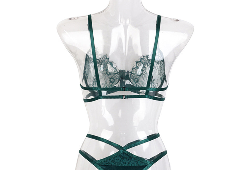 Two-Piece Green Lingerie Set with Black Closure, Underwire Support, and Push Up Bra