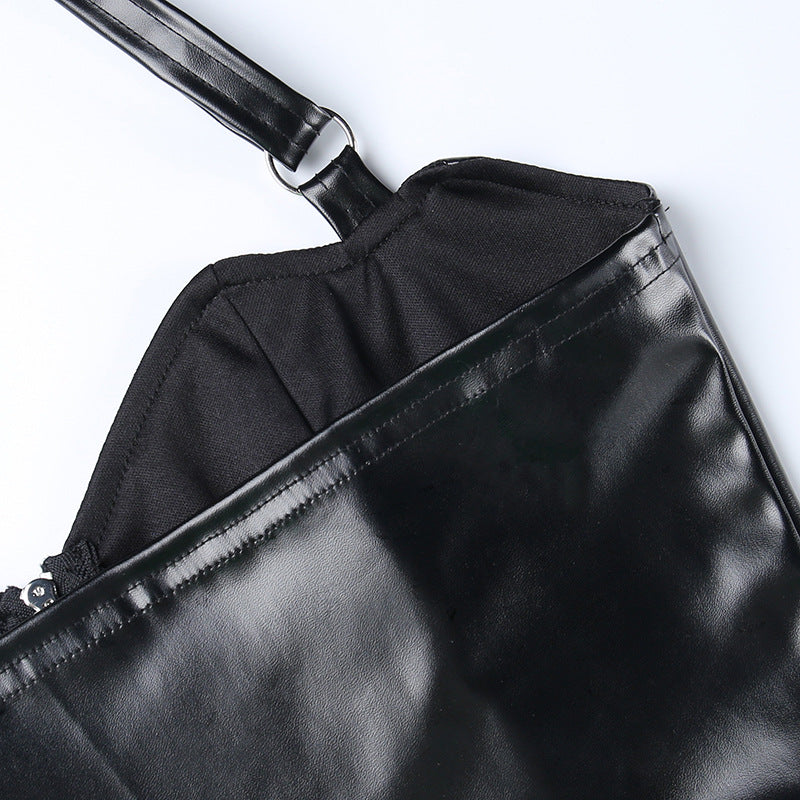 This gothic-style crop top is made of soft and durable PU material, perfect for any dark and edgy look. The solid pattern adds a touch of mystery, making you stand out in any crowd. Embrace your inner darkness with the Haunt Me Softly Crop Top.