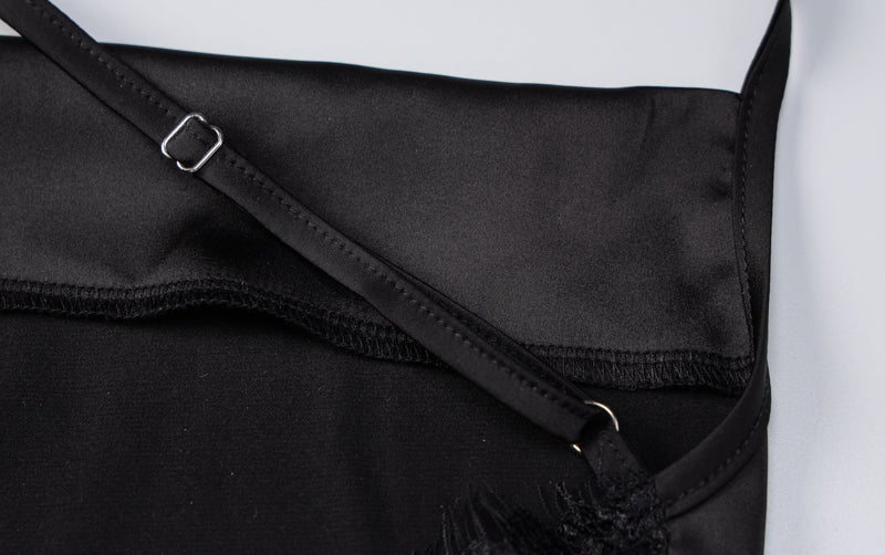 The gorgeous spaghetti straps make this dress perfect for a date night, or a night out with the girls. The elegant backless design and lace decoration add a touch of glamour to this dress.