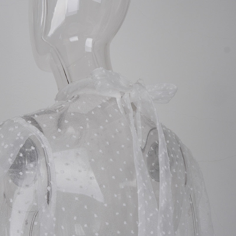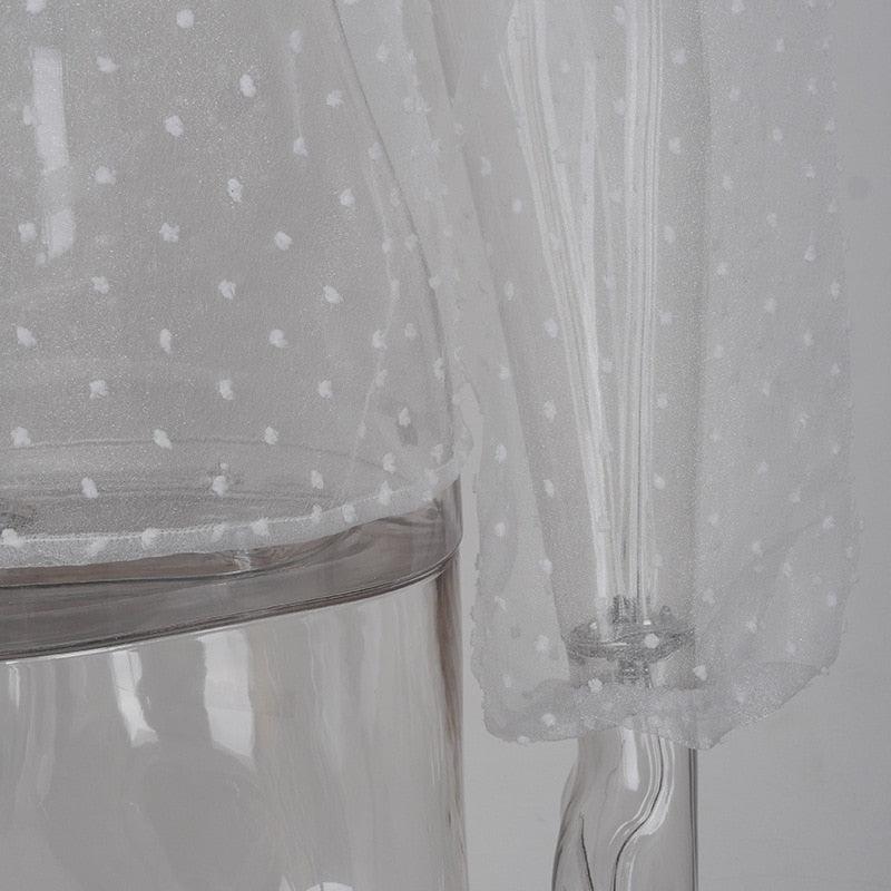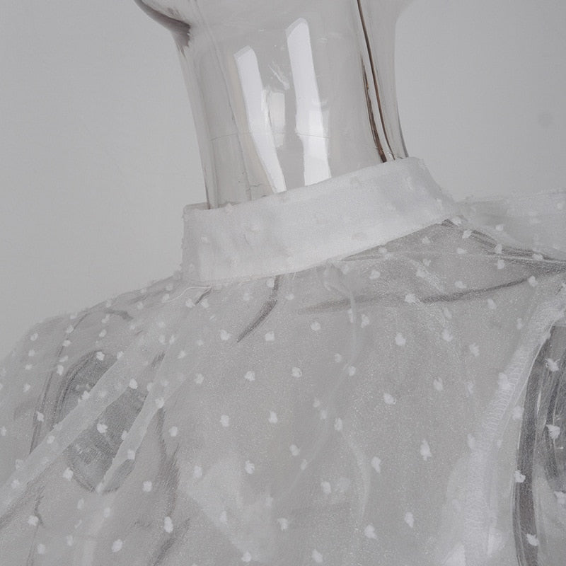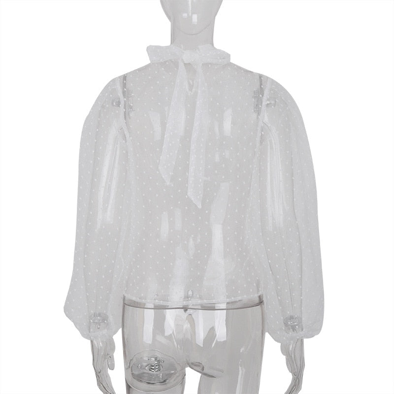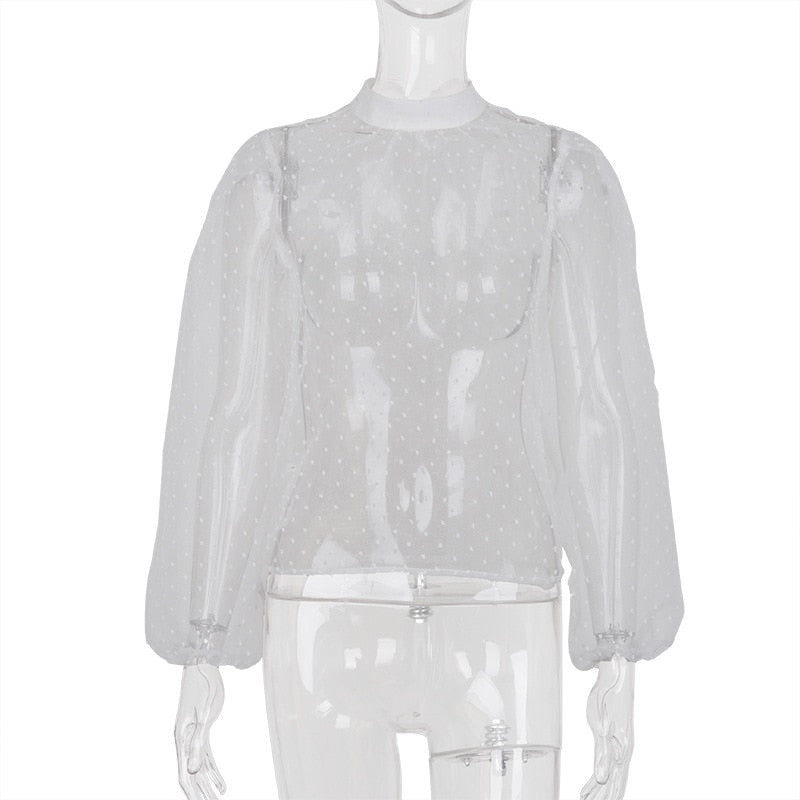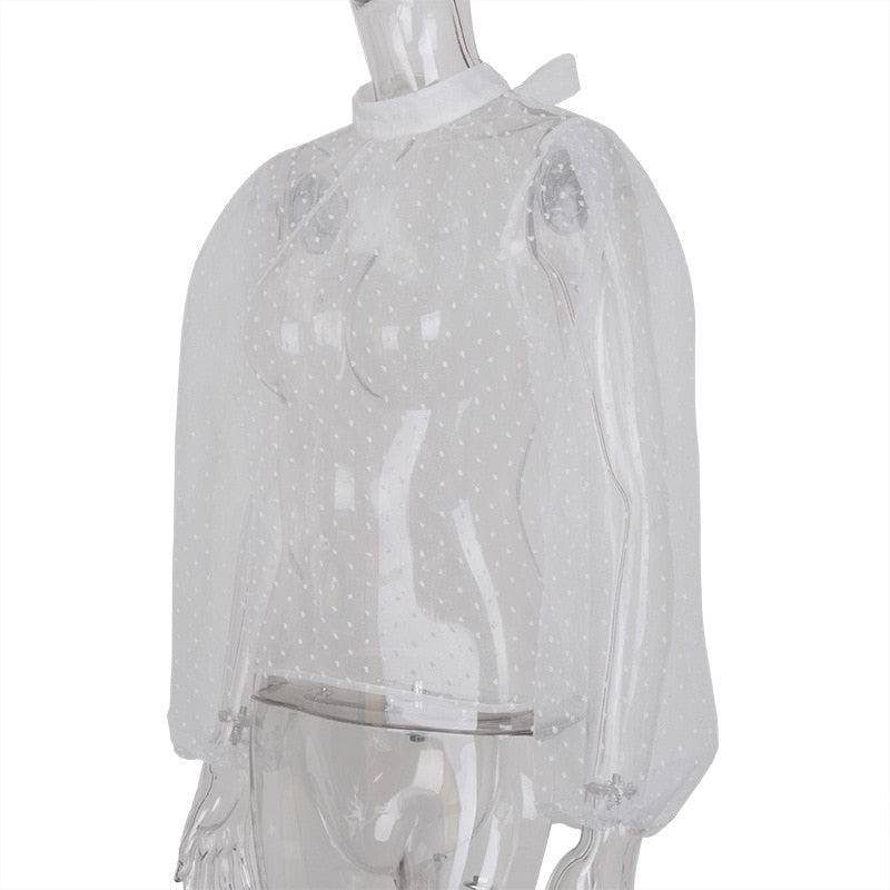Highstreet Mock Neck Bubble Long Sleeve See Through Women Blouses