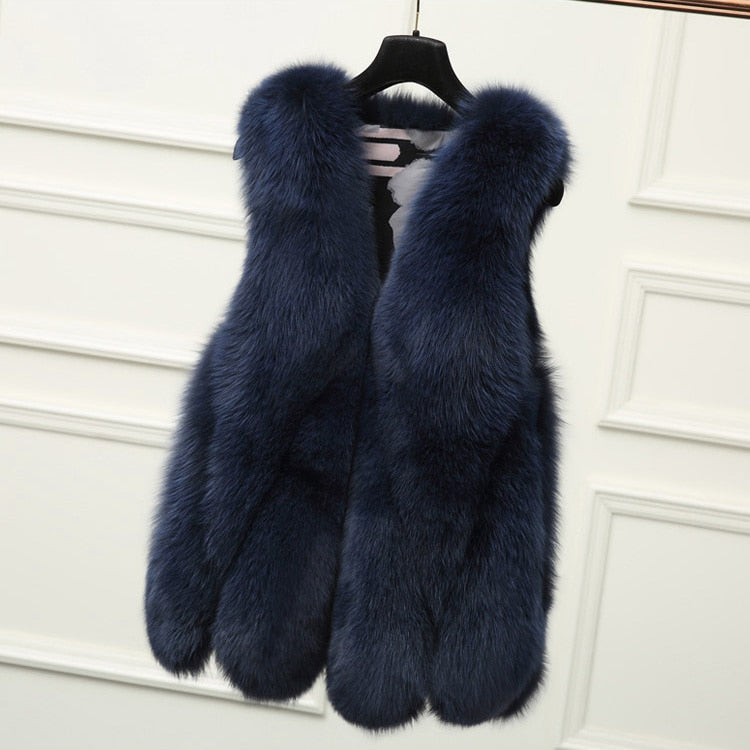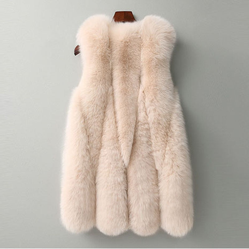 Solid Color Sleeveless Coat With Faux Fur Material And V-Neck Collar