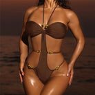 Make a bold statement in this striking monokini featuring hollow metal beads that catch the light with every movement. The sleek, minimalist silhouette is elevated by intricate beadwork that adds dimension and sophistication to your swimwear collection. Perfect for those who want to stand out poolside or beachside with confidence and style. The lightweight metal beads ensure comfort without compromising on impact.