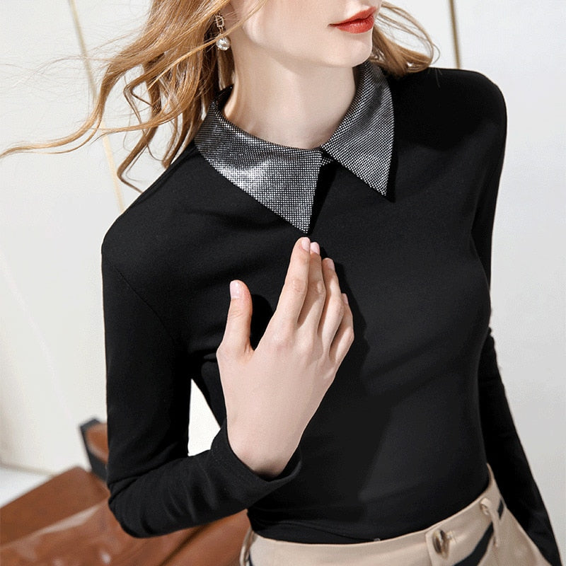 Pullover Solid Cotton Spandex T-Shirt with Turn-Down Collar