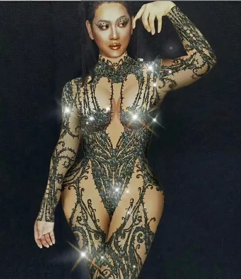 Look stylish and feel comfortable in the I Will Stuck In Your Head Jumpsuit. This jumpsuit is made of spandex and is full-sleeved for maximum coverage. The geometric pattern has been perfectly complemented with beads and lace embellishments for an eye-catching look.