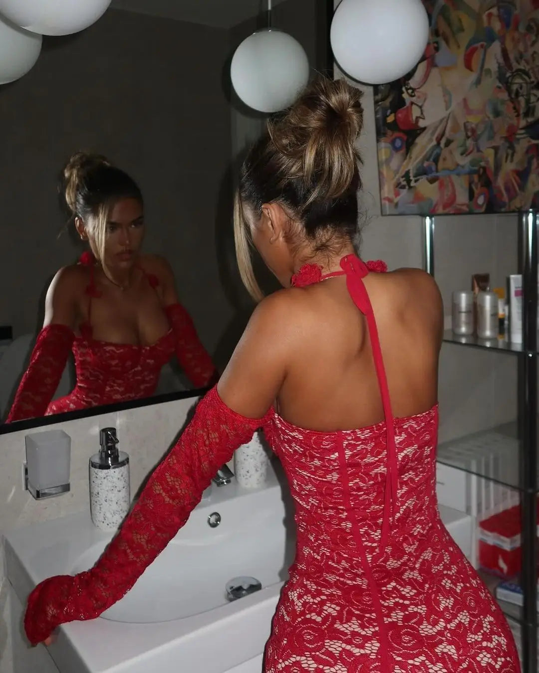 This audacious mini dress combines delicate lace with a mesmerizing floral print on premium polyester fabric. The daring cut and fitted silhouette create an unforgettable look that radiates confidence and sophistication. Perfect for those moments when you're ready to make a bold statement and own the room. Dress it up for a night out or keep it casual—either way, you'll turn heads.