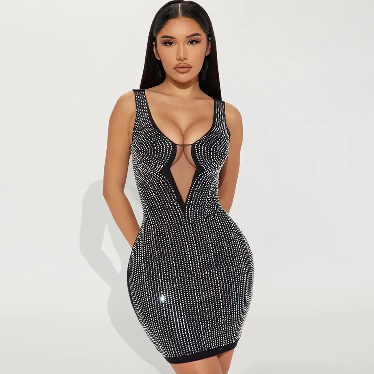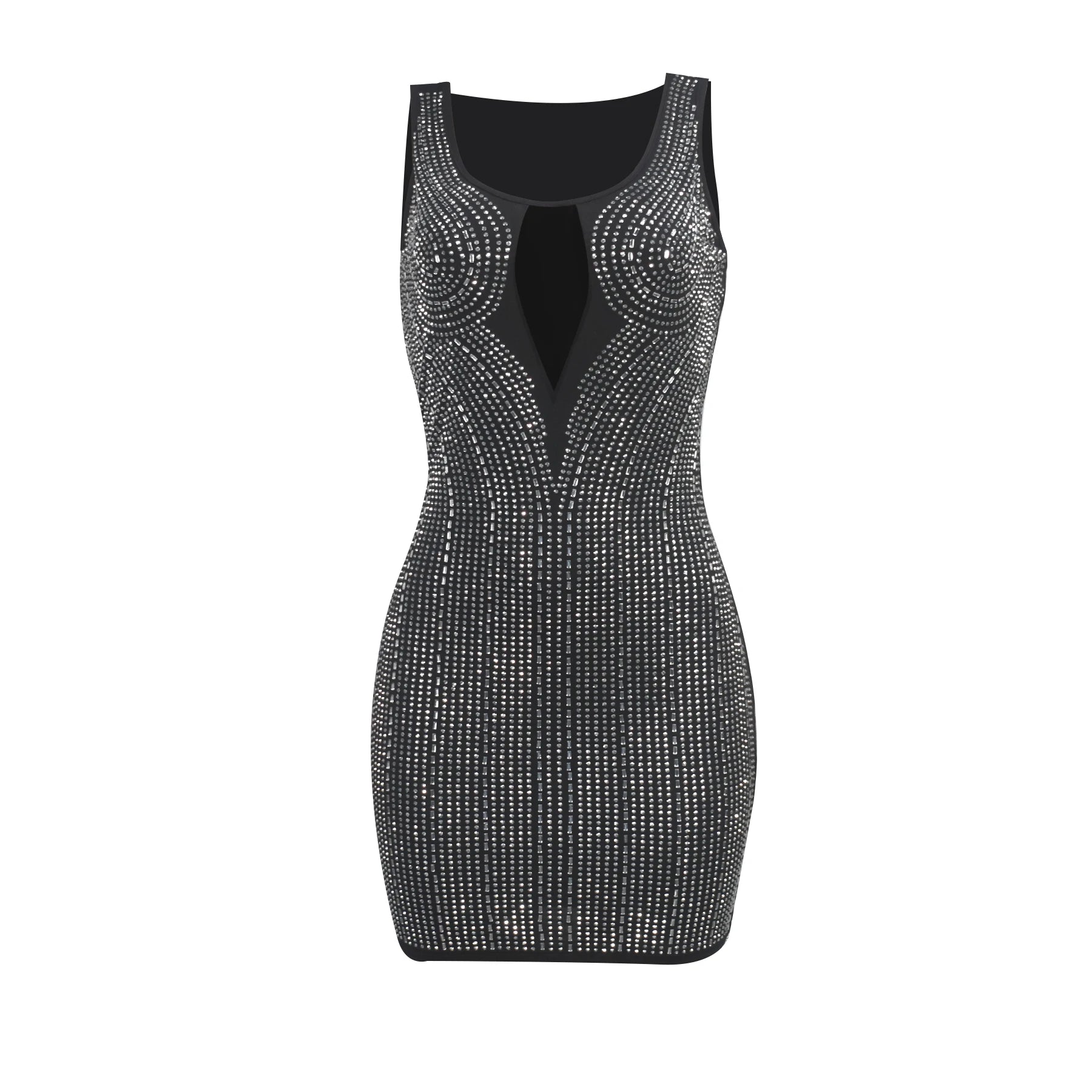 Upgrade your wardrobe with our Is It Over Now Mini Dress! Made with high quality polyester and mesh materials, this strapless dress features a square collar and above knee length for a sexy and club-worthy look. With added rhinestone embellishments, this mini dress will have you turning heads all night!