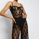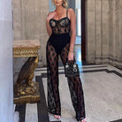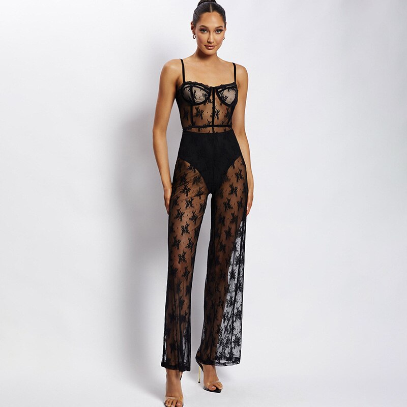 Dress to impress in this ultra-chic jumpsuit! A lace overlay accentuates the waistline, while the spaghetti straps provide a feminine touch. The black color will match any of your heels and bags.