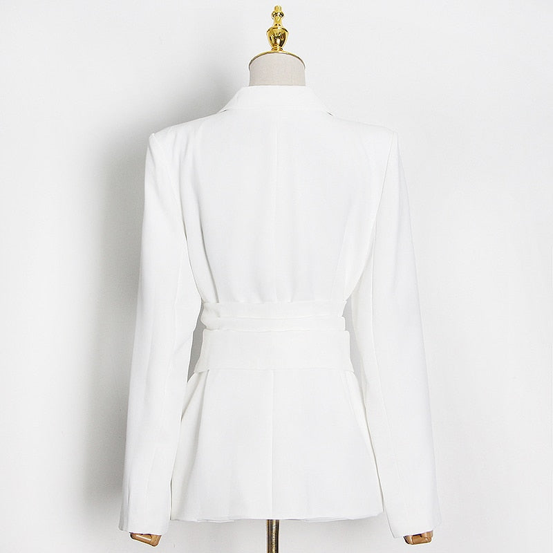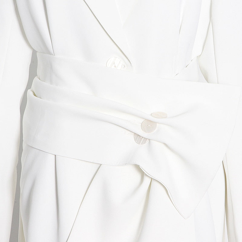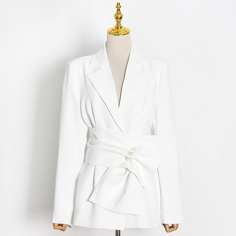 Single Button Solid Blazer with Notch Lapel Collar and Sashes Decoration