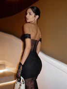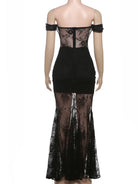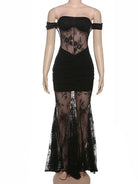 Command attention in our Love Loop Lace Maxi Dress, featuring a captivating asymmetrical silhouette that creates a stunning visual impact. The alluring off-the-shoulder sleeve style beautifully frames your décolletage while offering a perfect balance of elegance and sensuality. This show-stopping dress doesn't just enhance your curves—it transforms your presence, making it impossible to be forgotten at any special occasion.