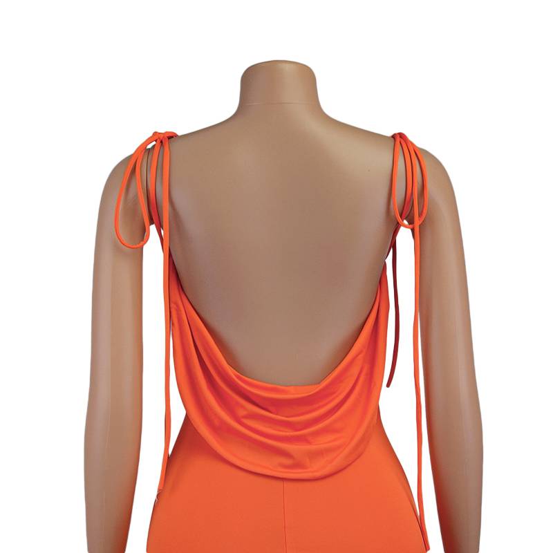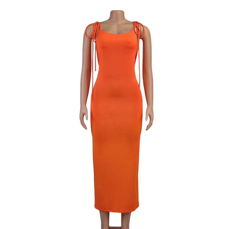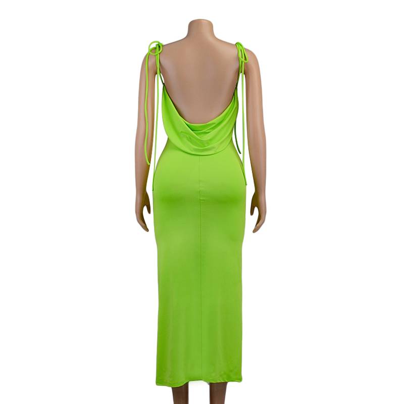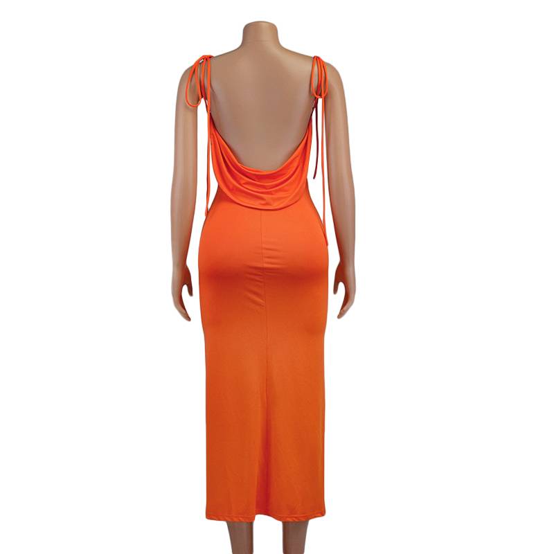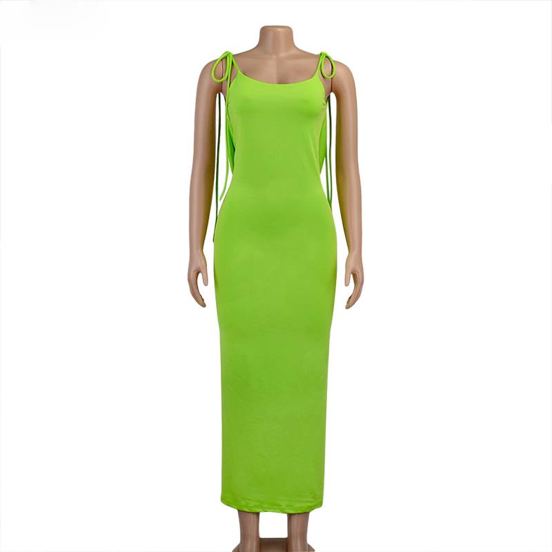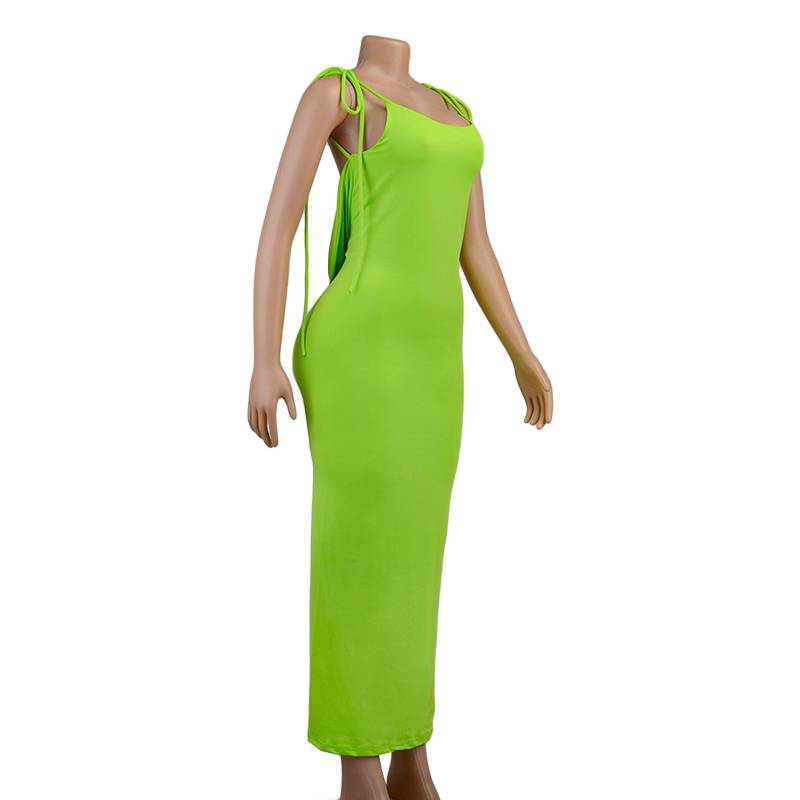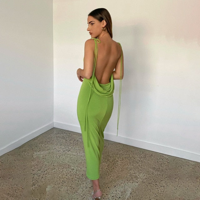 Solid Backless Cotton Polyester Maxi Dress with Spaghetti Strap