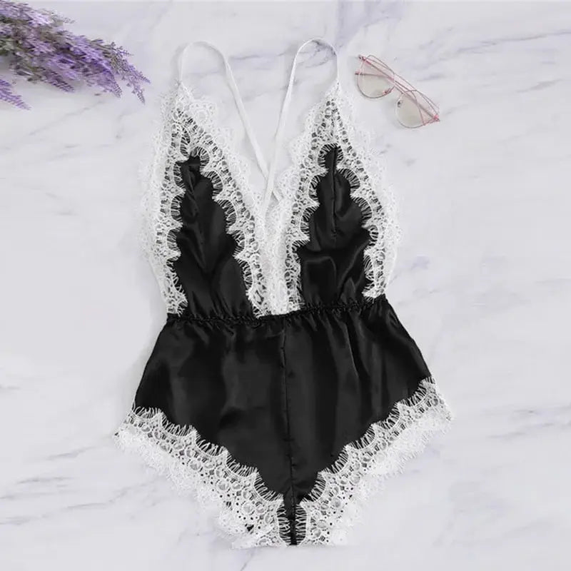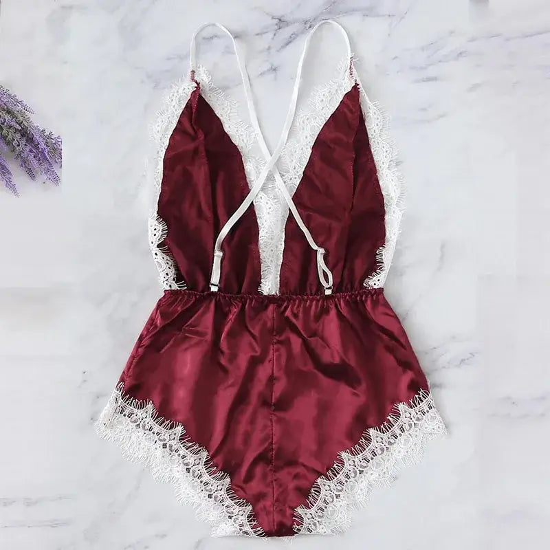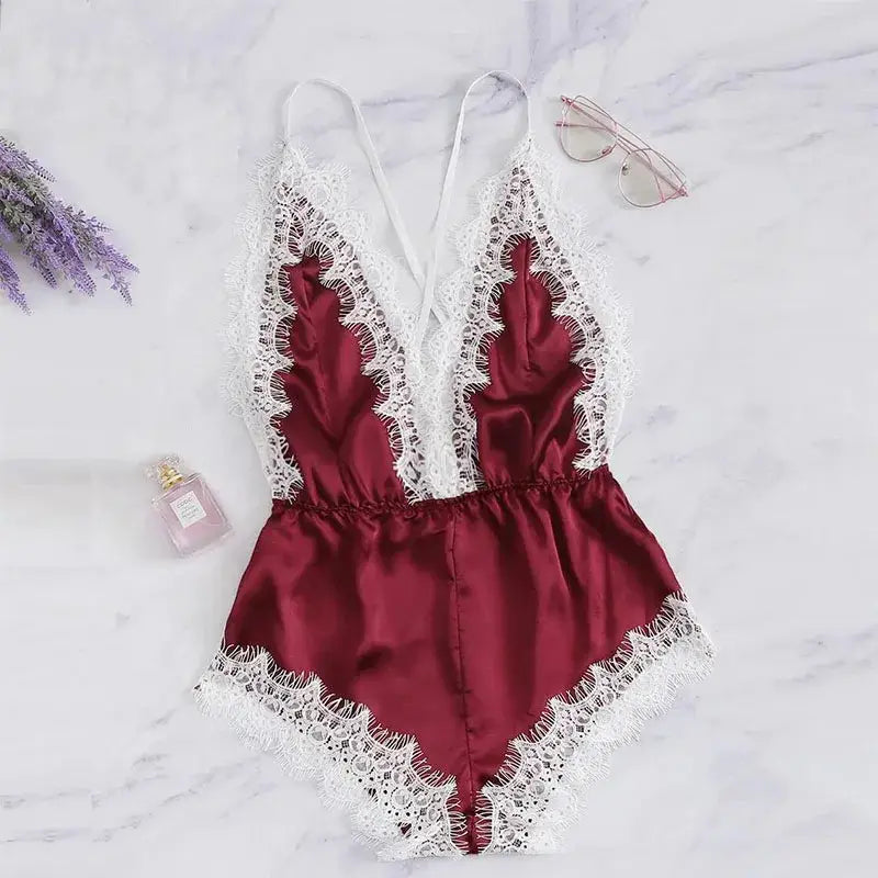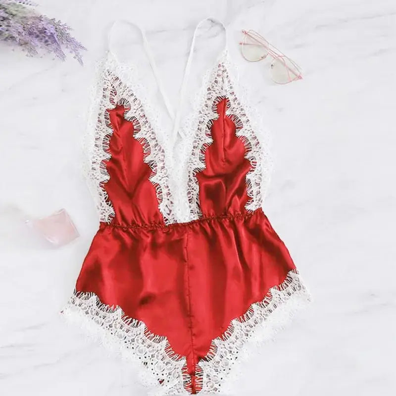 Unleash your inner romance with our Lucky I'm In Love Pajamas! Cozy up in this sleeveless onesie with a delicate lace trim and a flattering v-neck collar. The solid pattern adds a touch of elegance while the lace adds a hint of sensuality. Perfect for a night of relaxation and romance.