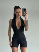 This Main Pop Moment Romper combines sleek spandex and durable polyester for a bold, form-fitting look. Its solid pattern highlights your confident style, making it perfect for standing out at any event. Embrace daring comfort and effortless flair with this striking romper.