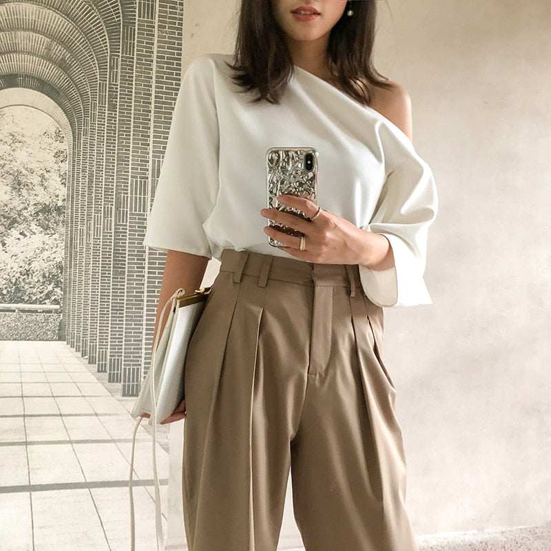 This blouse has a half-sleeve which allows you to move freely. The design is very simple and it's perfect for a casual look. The white color is perfect to match it with your favorite pants or skirt.
