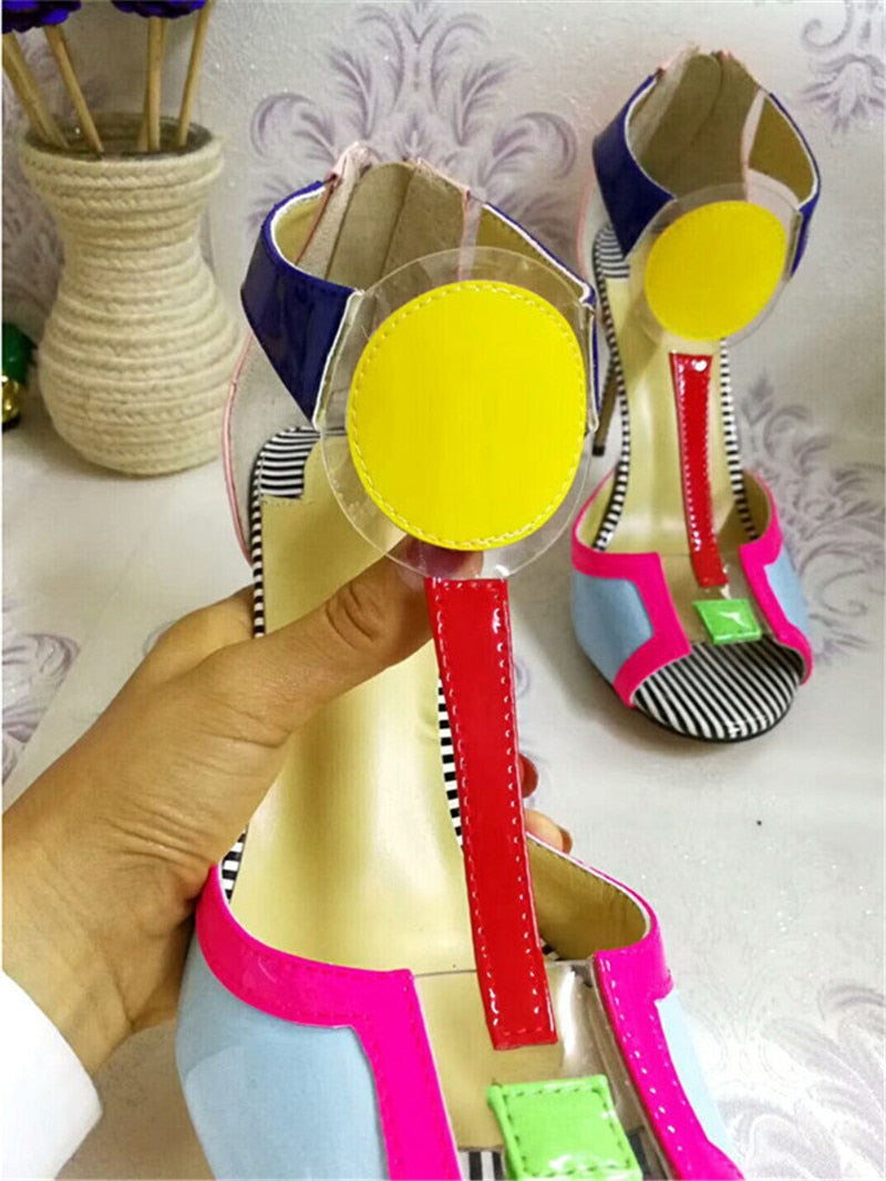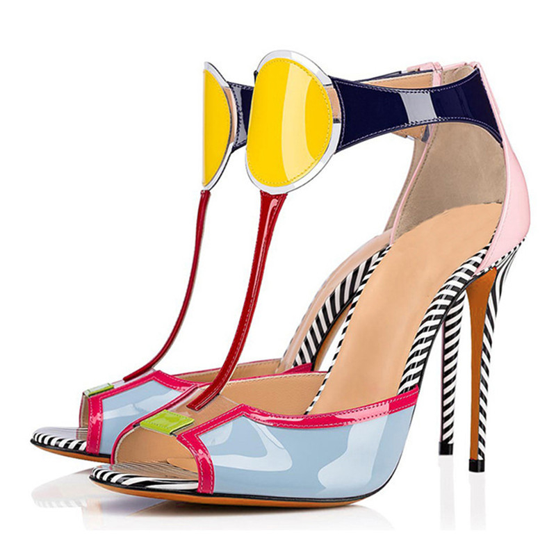 Patent Leather My Color Pop Peep Toe Thin Heel Shoes