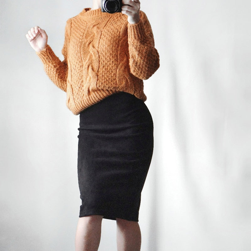 Silhouette: Midi Skirt / Women Skirt / Pencil Skirt / Suede Skirt