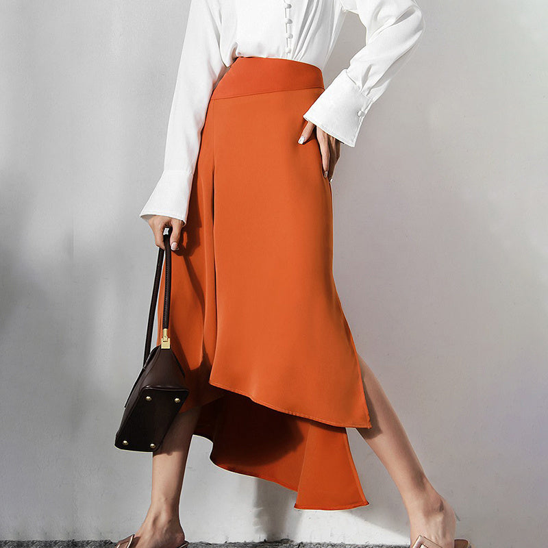 This flattering midi-length skirt is a simple and versatile style that can be paired with a number of different tops. The cotton material is durable and easy to maintain. With a simple and stylish shape, this skirt is a great staple for any wardrobe. The color-blocked design gives it a modern look that is versatile enough for any occasion. The asymmetrical silhouette is sexy and feminine. With a medium flowy fit, it's a flattering option for any body type.