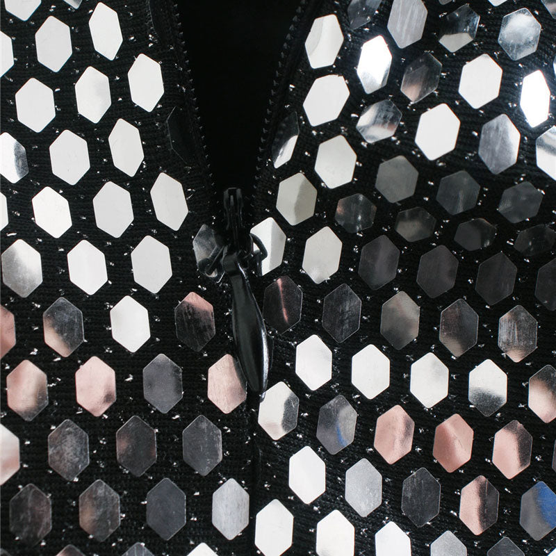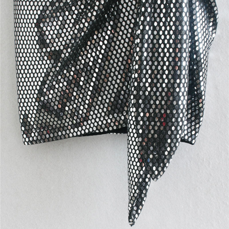 Sequin and Ruffle Decorated Polyester Mini Skirt with Zipper Closure