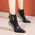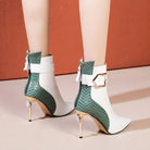 Dare to make a statement with these striking patchwork pointed toe ankle boots. Crafted from premium PU material, they deliver a bold, edgy aesthetic that commands attention. The sharp pointed silhouette elongates your leg while the patchwork design adds an avant-garde twist to your everyday look. Perfect for those who refuse to blend in—pair them with anything from leather jackets to flowing dresses for an unexpectedly fierce contrast. Step into confidence.