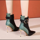 Patchwork Pointed Toe Ankle Boots