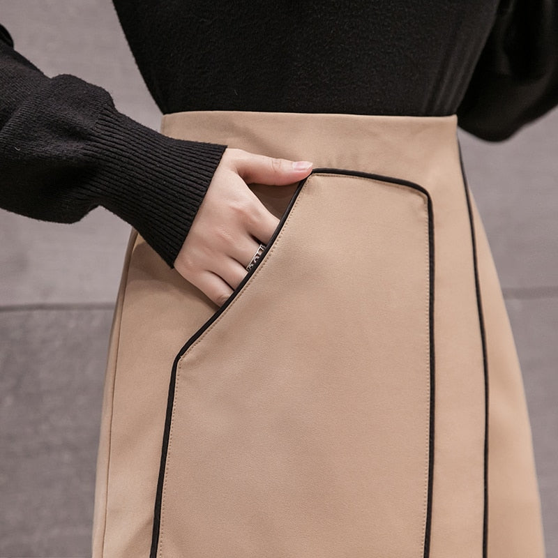 Polyester Spandex on Asymmetrical Pockets Midi Skirts