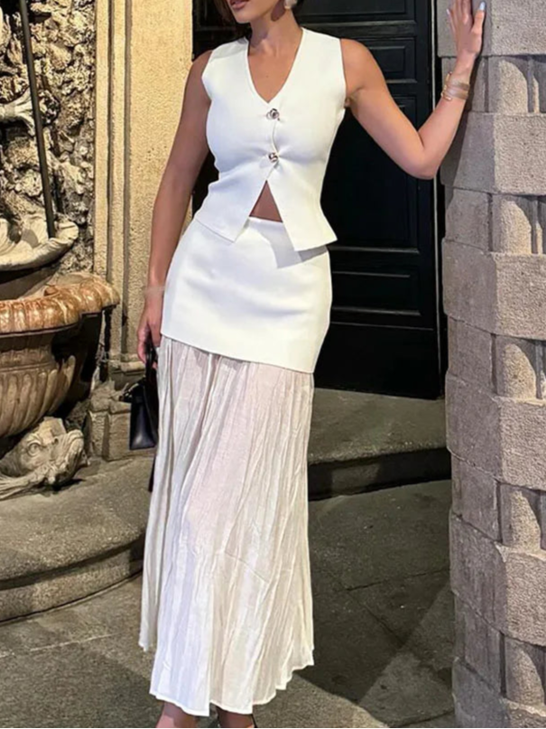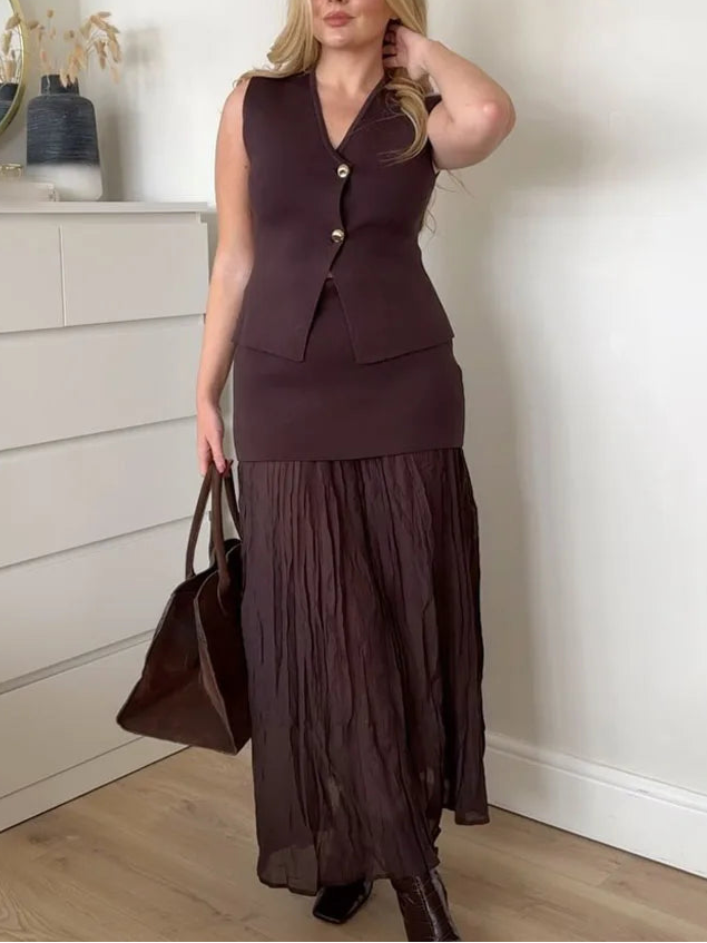 Elevate your workwear game with our Queen of Sand Castles Skirt Set. This stylish top and skirt set features a single breasted closure for a sleek and professional look. Perfect for conquering the boardroom and making a statement. Get ready to rule in style!