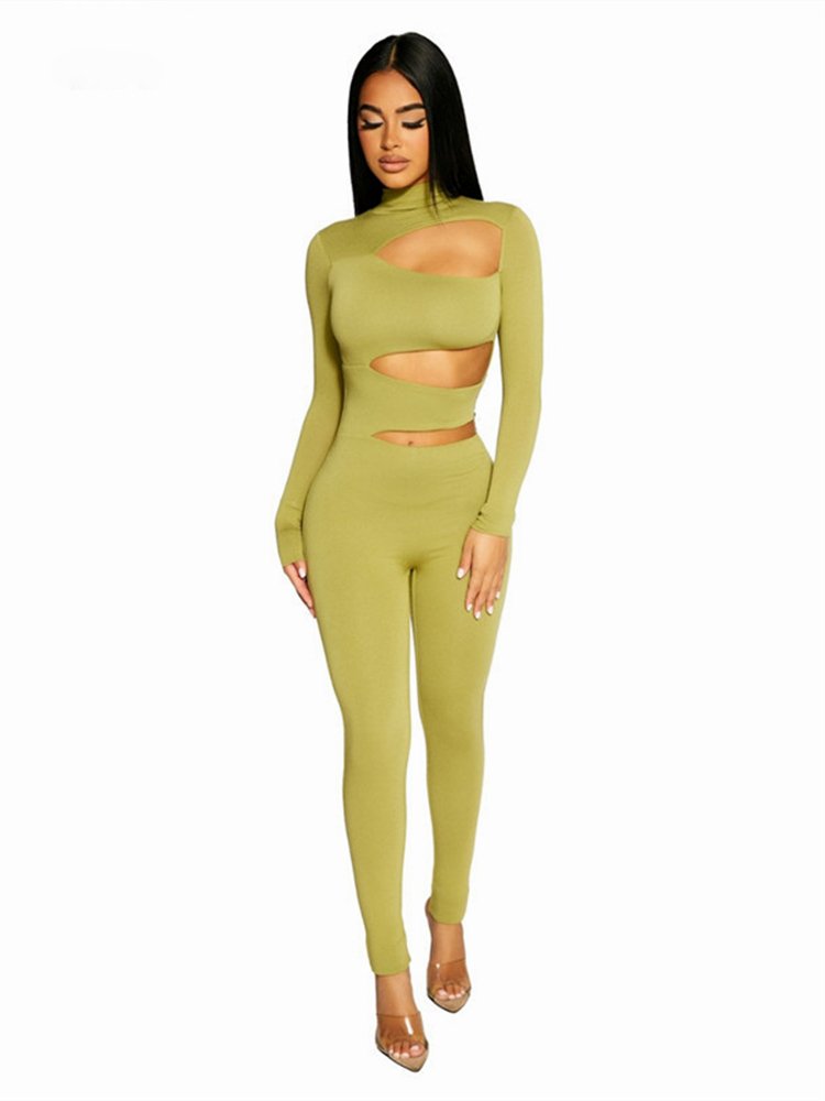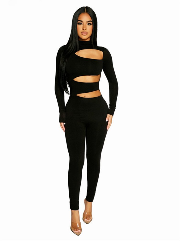 Made from a light, breathable fabric, this jumpsuit is the perfect pick for summertime. The jumpsuit features a flattering turtleneck and a bodycon silhouette. The jumpsuit also features a stylish side hollow-out design that is sure to turn heads.