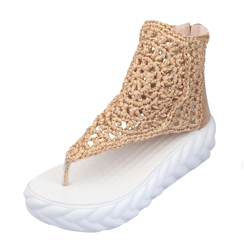 Microfiber Jelly Shoes with Crochet Style Ankle Wrap Strap