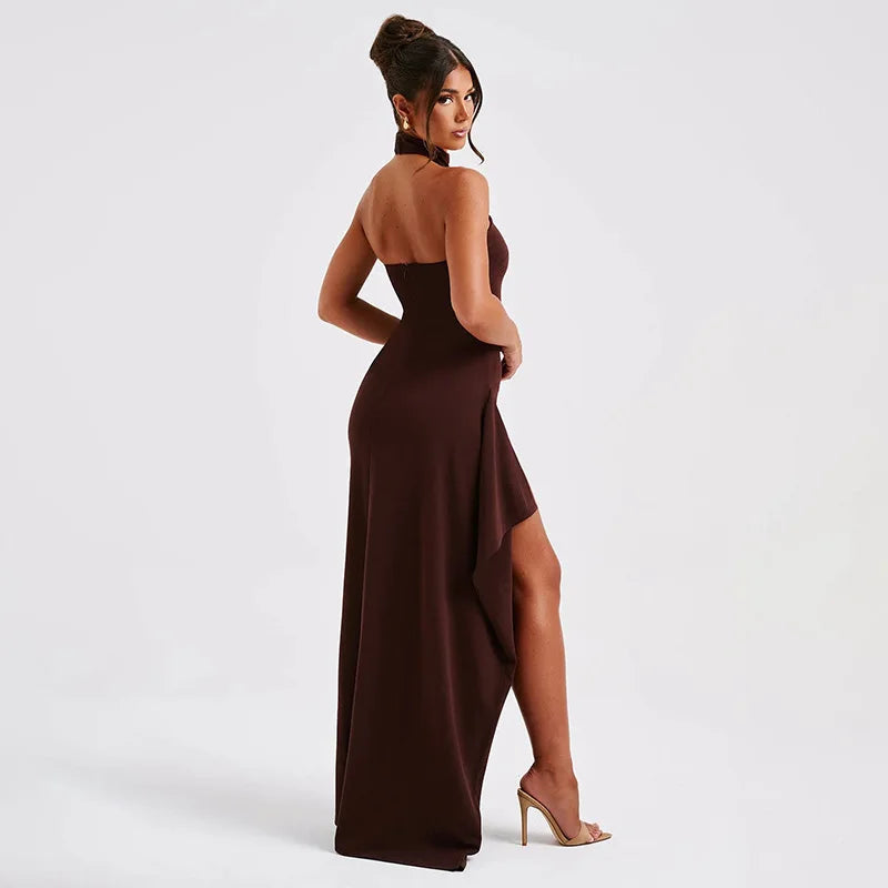 Transform your look with our Ring Ring The Bell Long Dress. The fit and flare silhouette accentuates your curves while the halter neckline adds a touch of elegance. Made with a perfect blend of polyester and spandex, this ankle-length dress is both comfortable and stylish. Perfect for a sexy and club-ready ensemble!