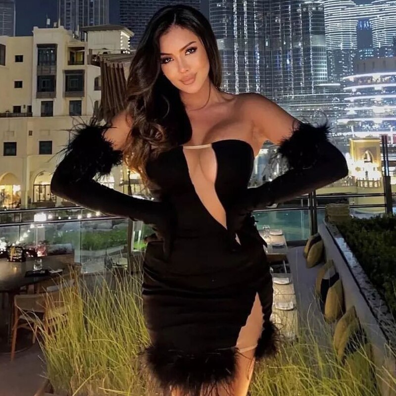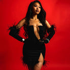 Look and feel your best in this lightweight and stylish cotton fabric dress that has a longline body shape and a stretchy fit. This dress is the perfect length for a nice evening out. The elegant and stylish design looks great for any occasion. The stunning design and bold black colors are sure to make you look and feel your best.