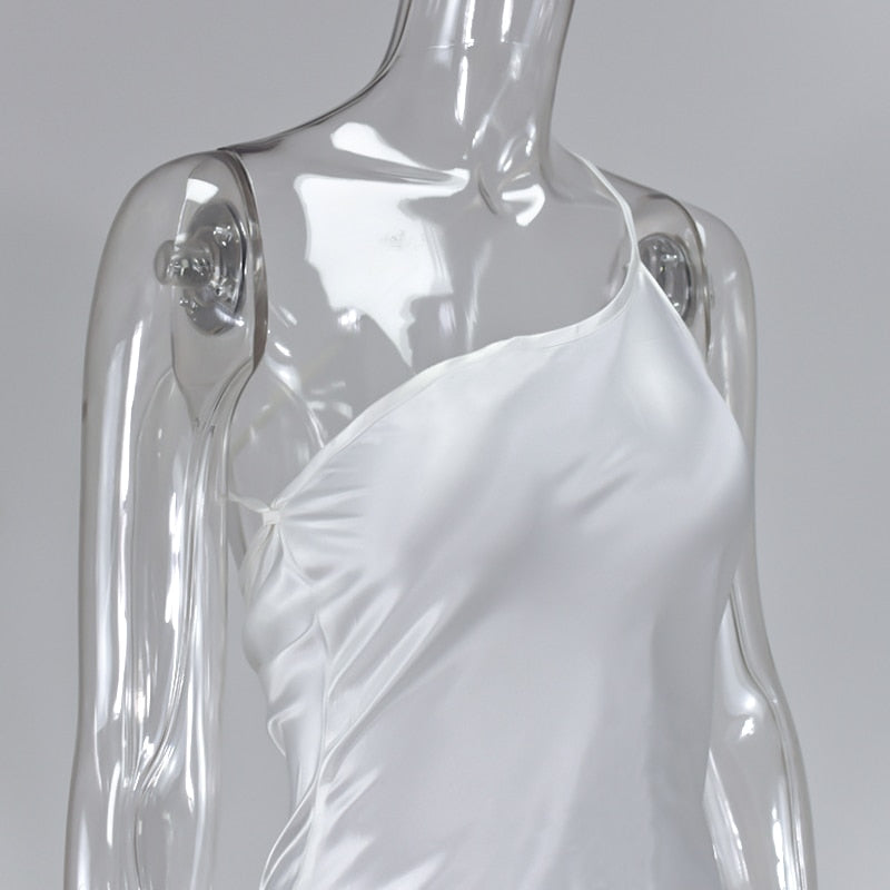 Polyester Spandex Sleeveless One-Shoulder Dress