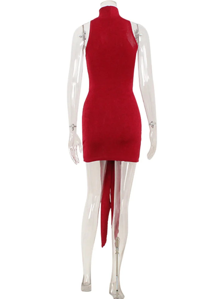 Elevate your wardrobe with this sleek Solid Halter Turtleneck Mini Dress. The classic halter neckline pairs perfectly with a cozy turtleneck, creating a sophisticated silhouette that works for both casual outings and evening events. The fitted mini cut flatters your figure while the solid color keeps styling effortless. Perfect for layering or wearing solo, this versatile piece transitions seamlessly from day to night.