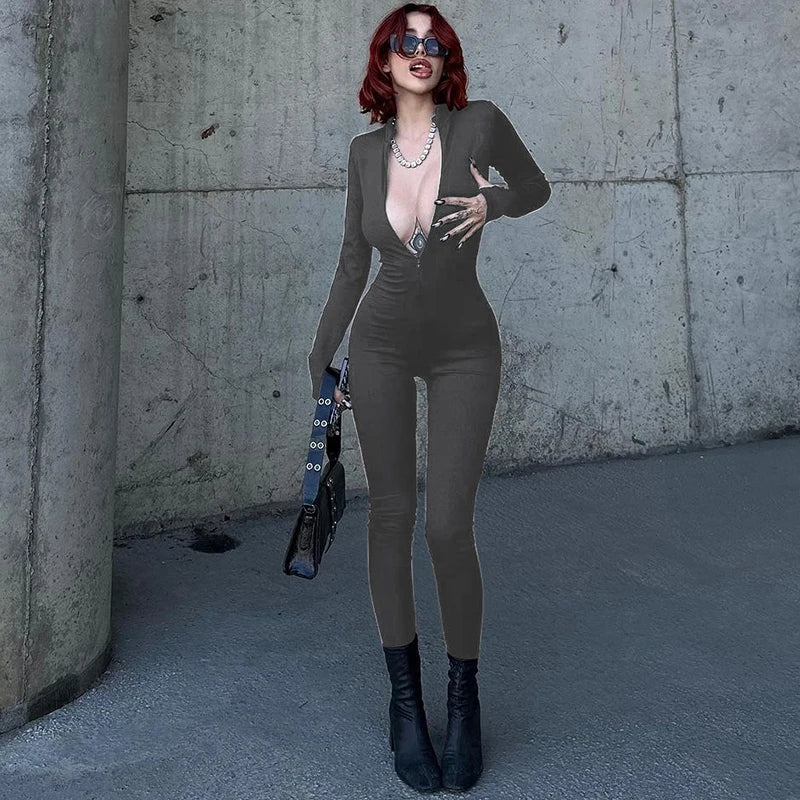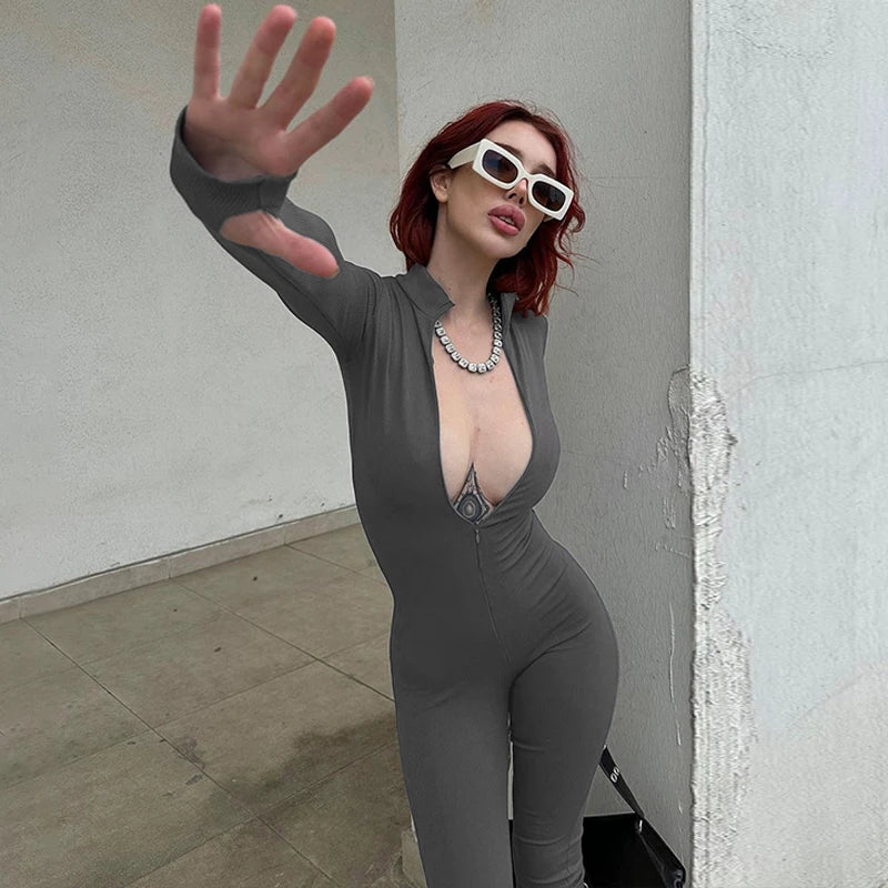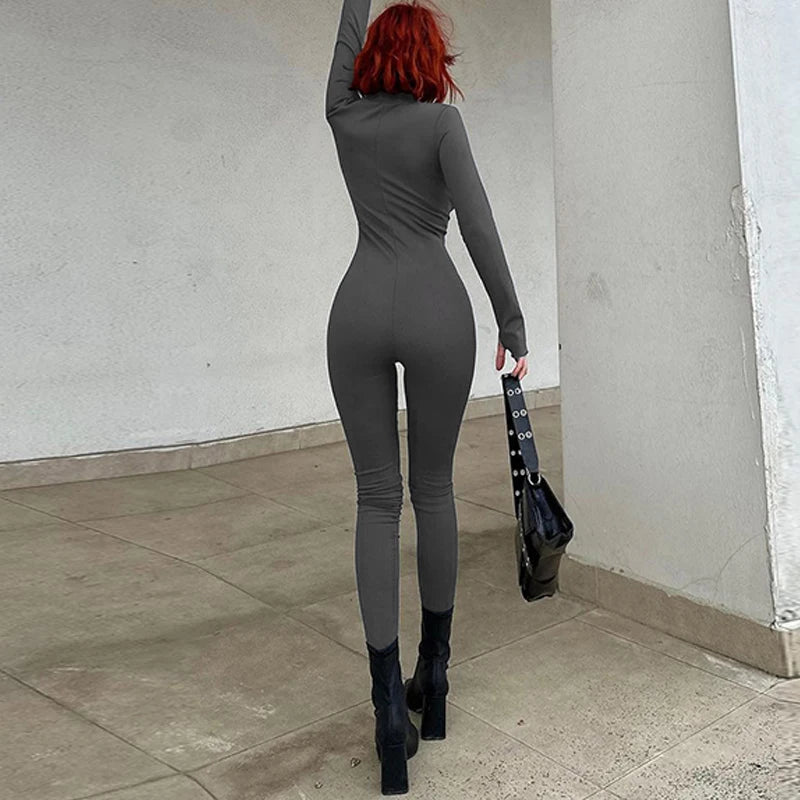 This jumpsuit is the perfect combination of comfort and style. It's made of a blend of polyester and spandex, giving you a breathable and stretchy fabric that will keep you comfortable all day. The solid jumpsuit features a zipper closure for easy on and off.