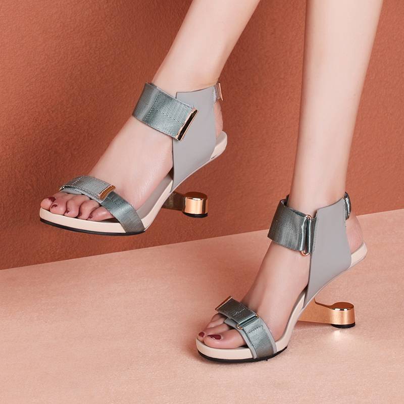 Solid Ankle Straped Pumps Made From Genuine Leather with Unique Floating Heels Style