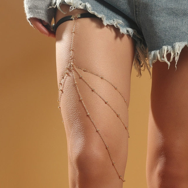 Elastic Band Leg Jewelry with Metal Chain and Charm