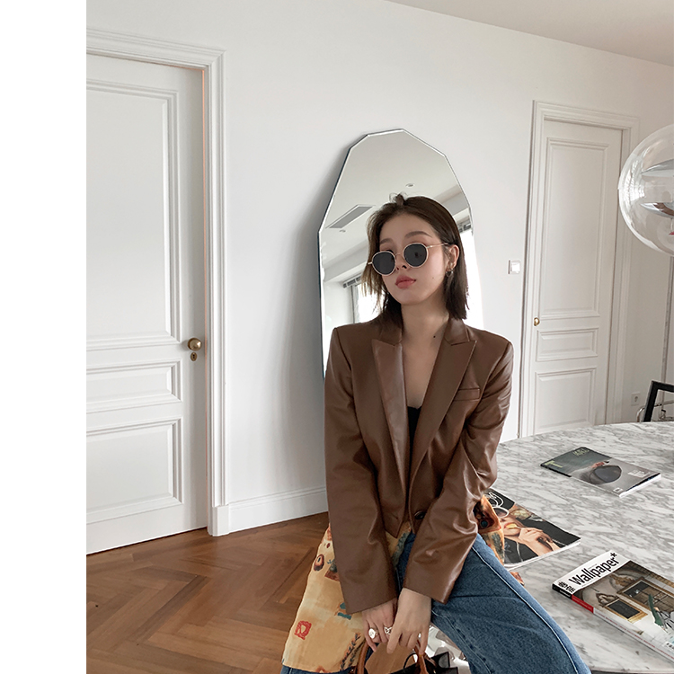 This jacket is made from faux leather that is perfect for both formal and casual wear. The peak-lapel collar and sleeve-button decoration make it a stylish way to make an impression.